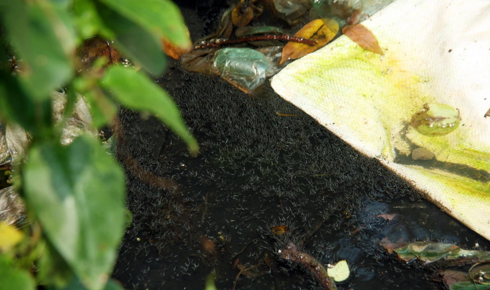 Những chỗ nước tù đọng ùn ứ lâu ngày dày đặc lăng quăng