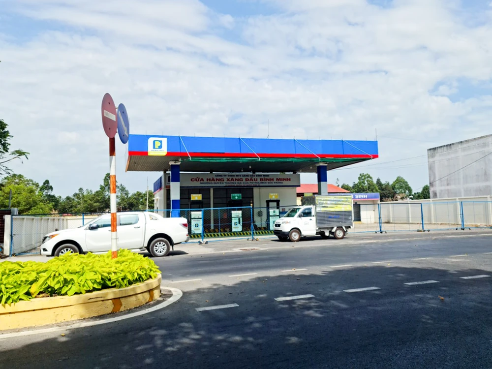 Một cửa hàng kinh doanh xăng dầu ở Sóc Trăng đóng cửa tạm ngừng bán. Ảnh: DIỄM HẰNG