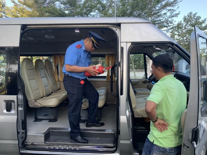 Thanh tra sẽ tiến hành kiểm tra điều kiện an toàn, thiết bị phòng cháy chữa cháy và giấy phép lái xe của tài xế. Ảnh: ĐÀO TRANG