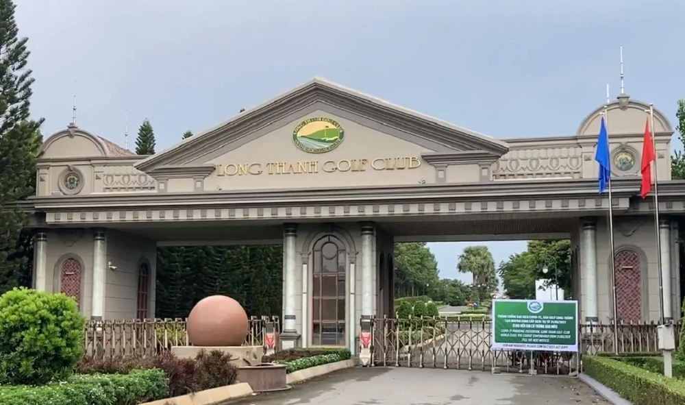 Cổng sân golf Long Thành thông báo tạm ngưng hoạt động từ ngày 31-5 để phòng chống dịch. Ảnh: VH