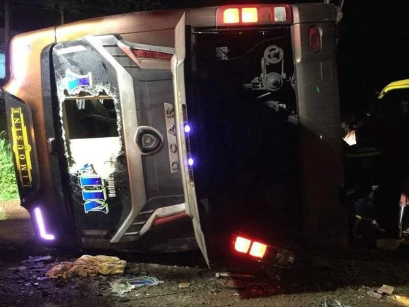 Hai mẹ con hành khách là chị Đặng Thị Diệu (27 tuổi, quê xã Mỹ Lộc, huyện Phù Mỹ, Bình Định), Chung Đặng Nhã Hân (2 tuổi) bị văng ra bên ngoài tử vong tại chỗ.