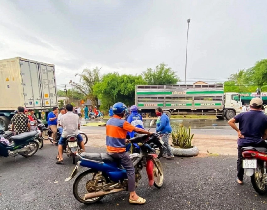 Cùng lúc này một phụ nữ chạy xe máy chở con gái đi học cũng bị xe tải này va vào. Cú tông mạnh khiến vợ chồng anh Sơn tử vong tại chỗ, bé gái được mẹ chở đi học bị thương nặng.