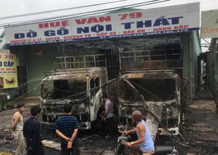 Mọi người chạy ra thì phát hiện một chiếc xe tải đỗ trước cửa hàng đồ gỗ đang bốc cháy dữ dội. Lửa bao trùm toàn bộ chiếc xe và cháy lan sang chiếc xe bên cạnh.