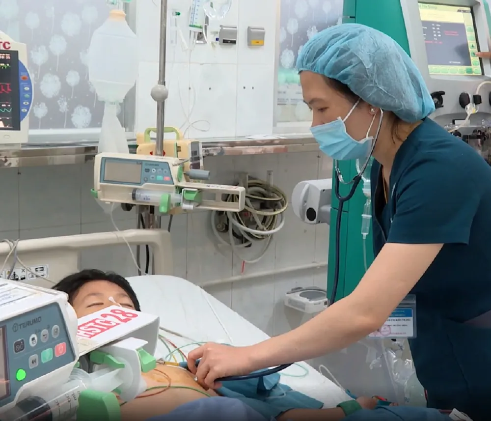 Riêng 2 bé là DTA và HĐ đã bị nặng ngay khi nhập viện trong tình trạng cơn ngưng tim, sốc với các biểu hiện mạch nhẹ, huyết áp khó đo và thở chậm, co giật. Các bác sĩ phải đặt nội khí quản, cấp cứu cơn ngưng tim, ngưng thở rồi đưa vào lọc máu liên tục. Dù được cấp cứu tích cực nhưng bé là DTA vẫn tử vong vì tổn thương đa cơ quan như: tim, thần kinh.