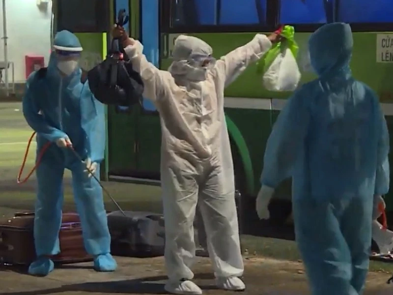 Công dân về nước được chuyển đến khu cách ly bắt buộc tại tỉnh Đồng Nai vào đêm ngày 7-7.