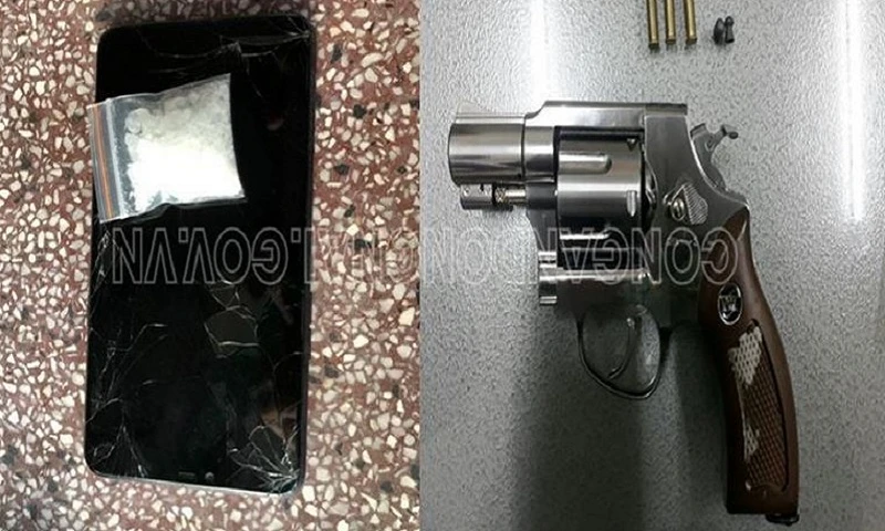 Công an khám xét nơi ở của Diễm đã phát hiện súng và ma túy đá. Ảnh: CAĐN