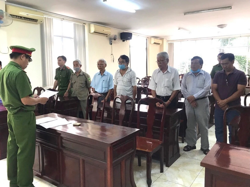 Công an đọc quyết định khởi tố các bị can. Ảnh:VH