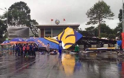 "Bức tường sắt" bị đổ sập. Ảnh: TIẾN DŨNG