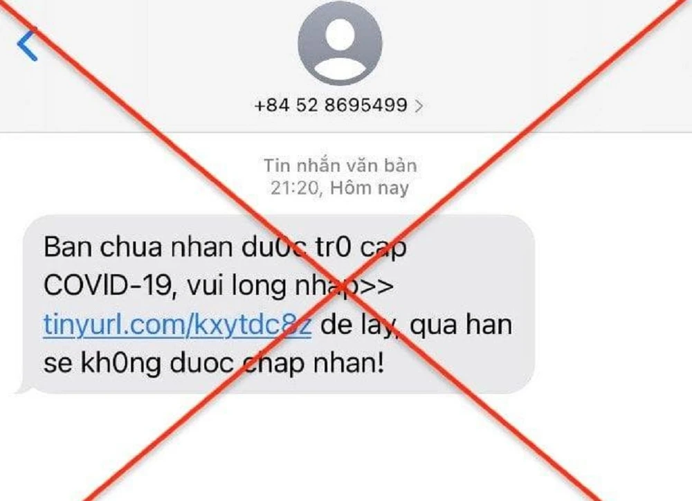 Theo đó, gần đây, phương tiện truyền thông phản ánh một số người dân nhận được tin nhắn từ đầu số 052… thông báo nhận tiền trợ cấp từ Qũy bảo hiểm thất nghiệp cho người lao động bị ảnh hưởng bởi đại dịch COVID-19: “Ban chua nhan duoc tro cap Covid-19, vui long dang nhap tinyurl.com/kxytdc8z (hoặc shorturl.at/frFHU) de lay, qua han se khong duoc chap nhan”.