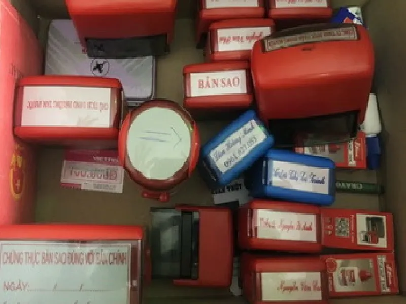 Khám xét phòng thuê trọ của Đạt, công an thu giữ một con dấu hình tròn có dòng chữ đỏ “UBND P. Tam Phước”, một con dấu hình tròn có dòng chữ đỏ “Công an thành phố Biên Hòa” và nhiều mộc dấu, tài liệu khác khác...