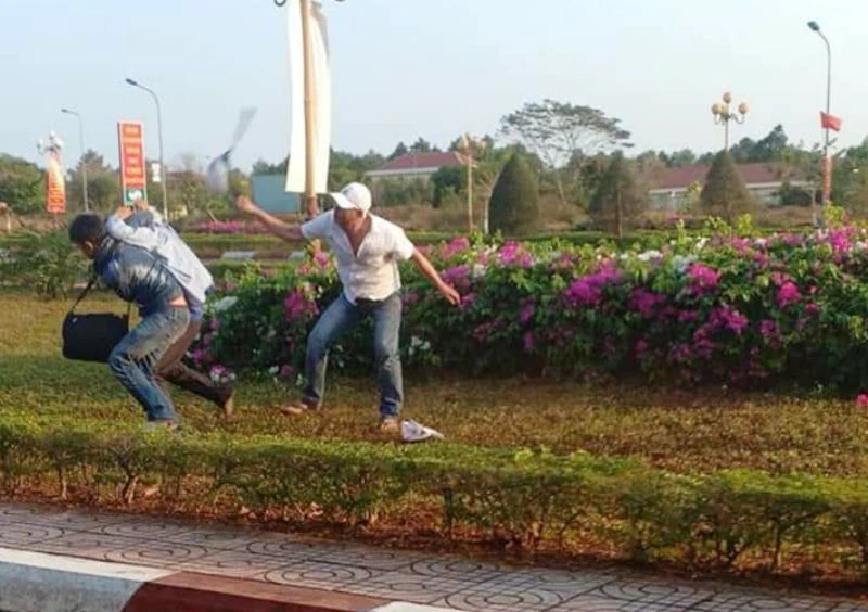 Công an mặc thường phục bị tấn công. Ảnh: MXH.