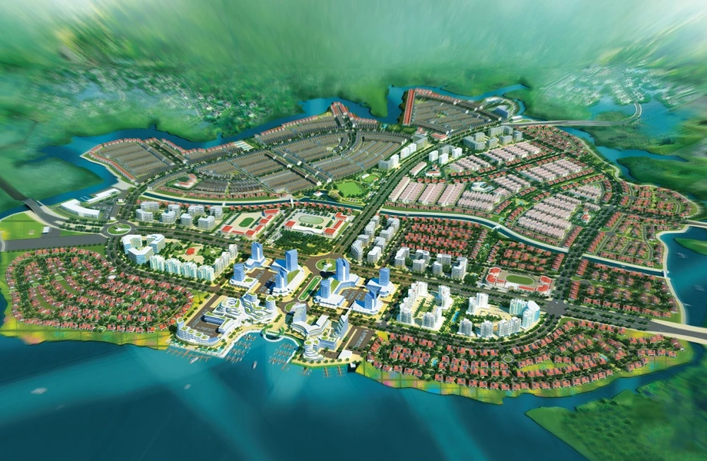 Hình ảnh mô phỏng khu đô thị khu đô thị Aquacity tại xã Long Hưng. Ảnh: AX.
