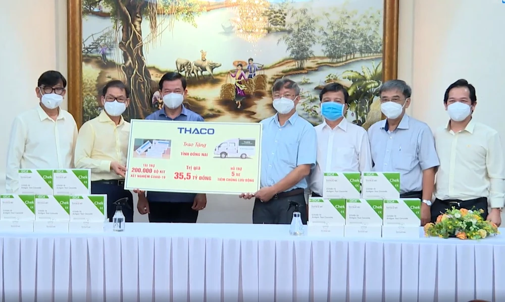Ngày 21-8, ông Nguyễn Hồng Lĩnh, Bí thư Tỉnh ủy và Cao Tiến Dũng, Chủ tịch UBND tỉnh Đồng Nai đã tiếp nhận các trang, thiết bị ủng hộ phòng dịch COVID-19 do Công ty CP Ô tô Trường Hải (THACO) trao tặng.