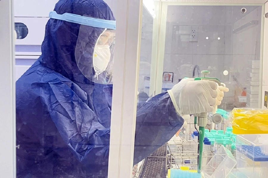 Nhân viên ngành Y tế xét nghiệm COVID-19 tại Trung tâm Kiểm soát bệnh tật tỉnh Đồng Nai (CDC). Ảnh: AX.