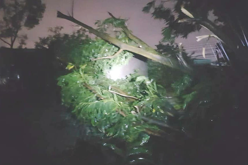 Một phần cây tràm đổ mái nhà trong đêm.