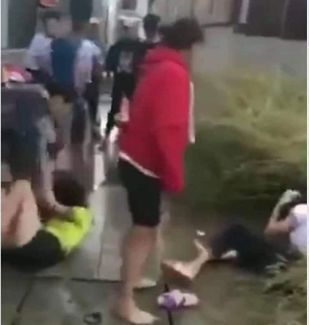 Thời điểm này có nhiều học sinh nam cùng trang lứa đứng xem nhưng không vào can ngăn. Sau khi đánh đập một cách dã man đối với N và T, 2 phụ nữ đã bỏ đi. Vụ việc được một người đứng xem ghi lại bằng điện thoại.