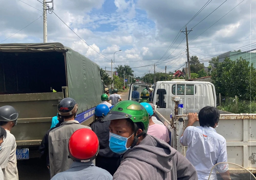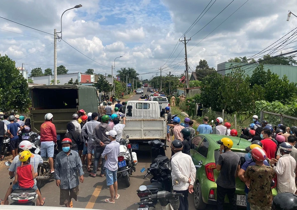 Khoảng 12 giờ ngày 7-11, lực lượng công an, xe cảnh sát cơ động, xe chữa cháy của TP Long Khánh (Đồng Nai) đang tố chức phong tỏa bao vây khu vực đường Suối Chồn (ấp Bàu Cối, phường Bảo Quang, TP Long Khánh) để bắt nghi can.