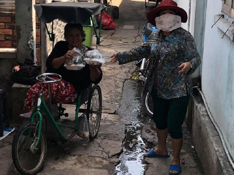 Nhiều người bán vé số trên địa bàn tỉnh Đồng Nai được mọi người quan tâm, hỗ trợ phát cơm miễn phí.