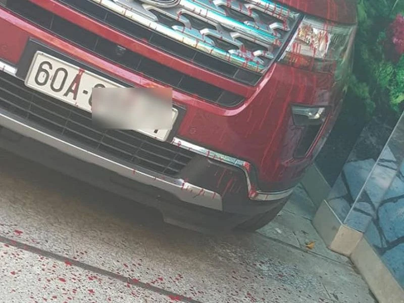Trước đó, vào sáng 25-3 gia đình ông mở cửa nhà thì phát hiện toàn bộ cổng nhà, tường xe ô tô bị tạt sơn đỏ.