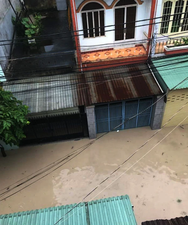 Nhiều tuyến đường, nhà dân bị ngập sâu trong nước sau trận mưa lớn.