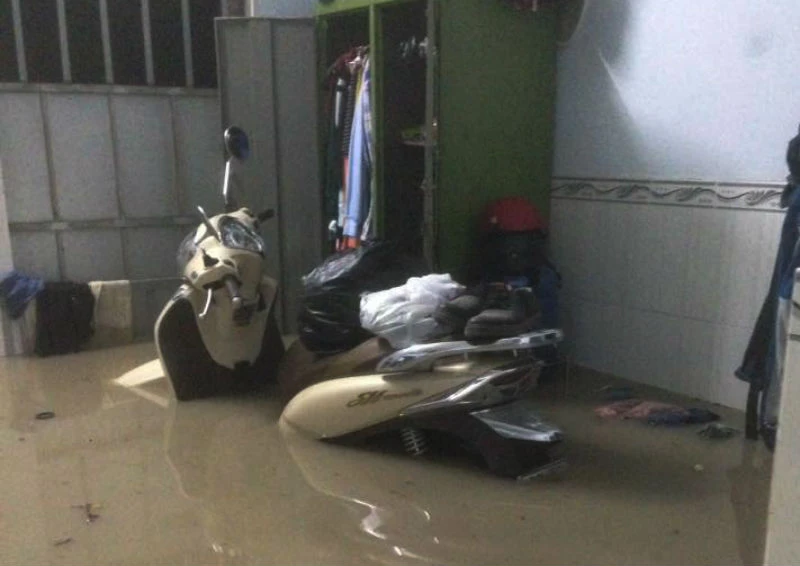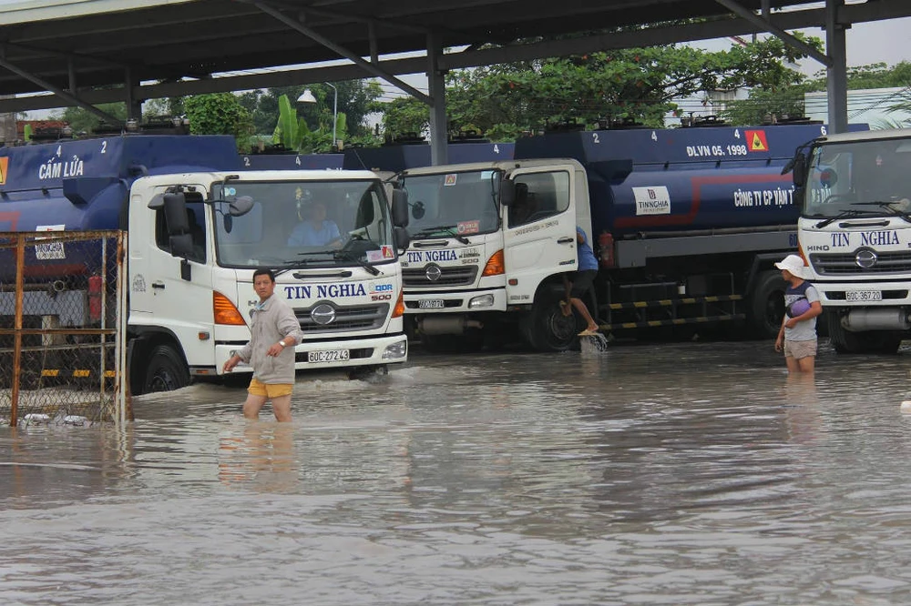 Thầy Phan Quang Vinh, hiệu trưởng Trường THPT Nguyễn Hữu Cảnh, cho biết nước ngập vào tất cả các phòng học của trường, có nơi ngập sâu hơn 70cm nên trường đã thông báo cho học sinh nghỉ học. Vì vậy, hơn 1.000 học sinh Trường THPT Nguyễn Hữu Cảnh ( phường Long Bình Tân) phải nghỉ học do trường ngập sâu.