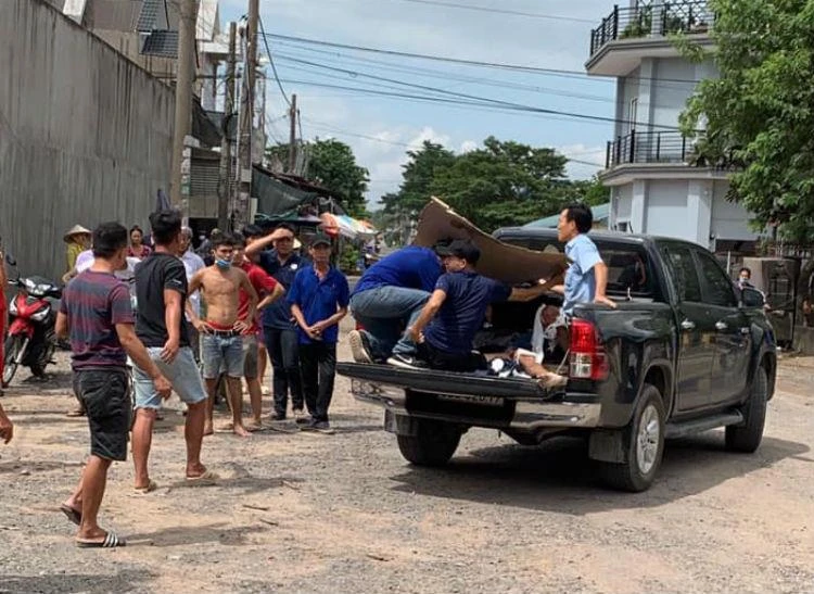 Sau khi nhóm gây án bỏ đi, nạn nhân được mọi người đưa đi cấp cứu tại bệnh viện trên chiếc ô tô bán tải.