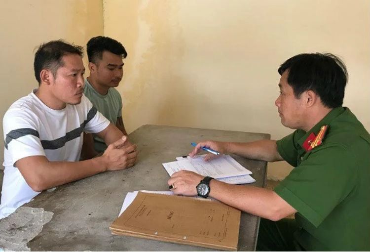 Hai nghi can Ngọc và Việt tại cơ quan công an. Ảnh: CAĐN.