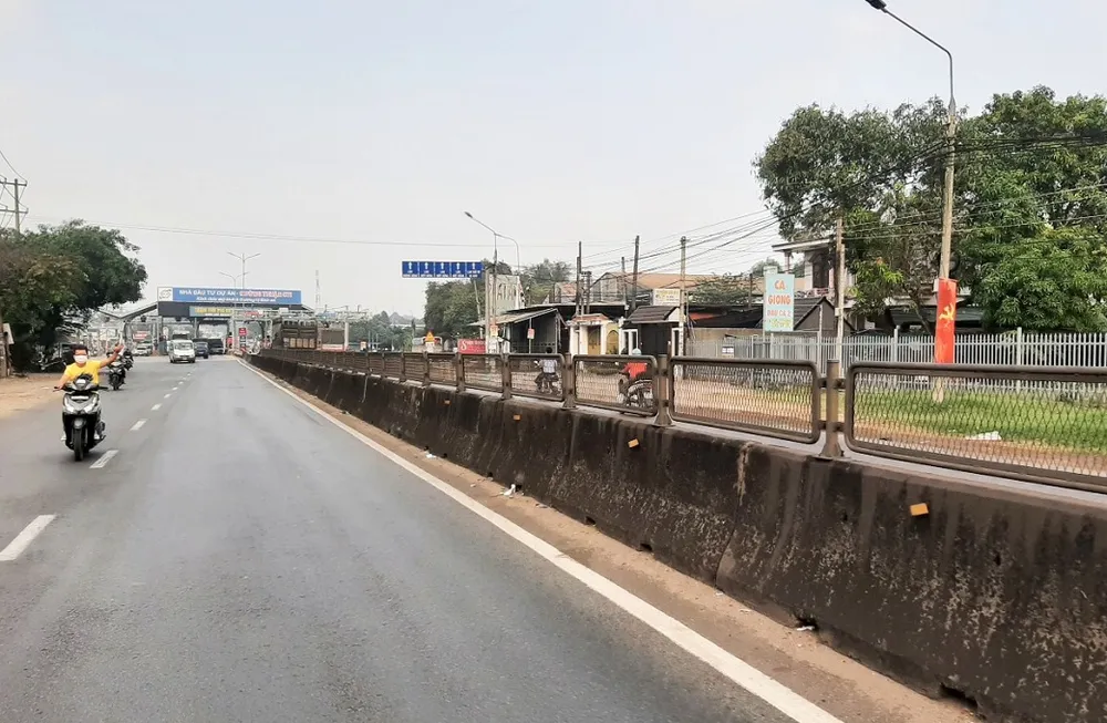 Khu vực gần trạm BOT quốc lộ 1 đường tránh Biên Hòa có dải phân cách cứng giữa đường cao khiến người dân khu vực đi lại sang bên đường hết sức khó khăn. Ảnh: VH.