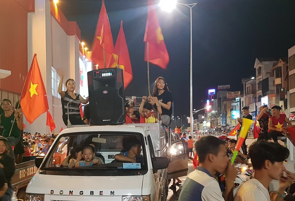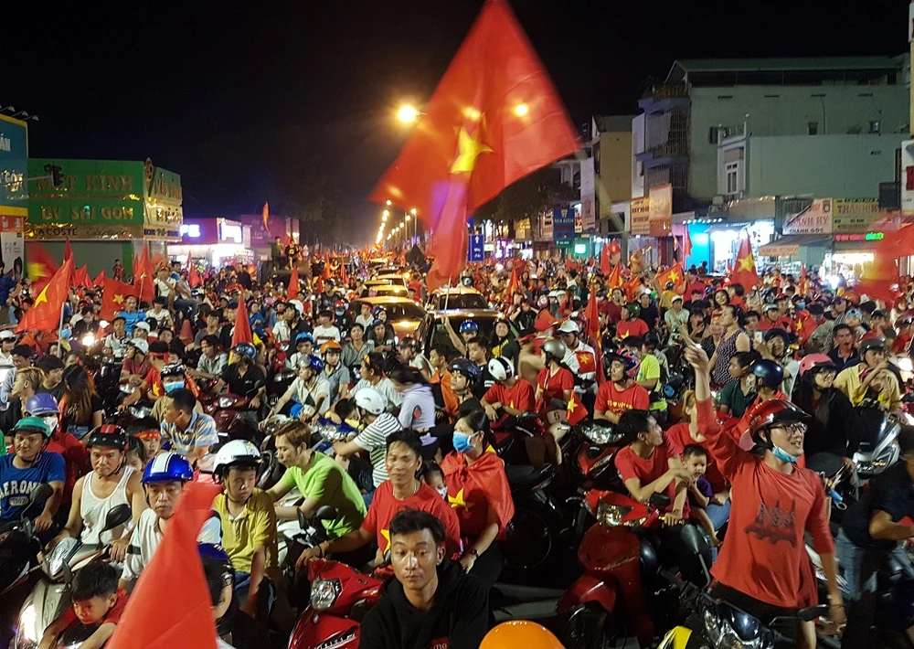 Hân hoan mừng chiến thắng, không ít người hâm mộ đã không ngại chạy xe hơn chục cây số từ các các huyện: Long Thành, Trảng Bom lên khu vực trung tâm TP.Biên Hòa để hòa vào dòng người trên phố. Chính vì lượng người đổ ra đường quá đông nên khu vực ngã tư Tân Phong, Quảng trường tỉnh Đồng Nai không nhích chân. Tất cả mọi người chỉ biết đứng "chôn chân" một chỗ vì kẹt cứng.