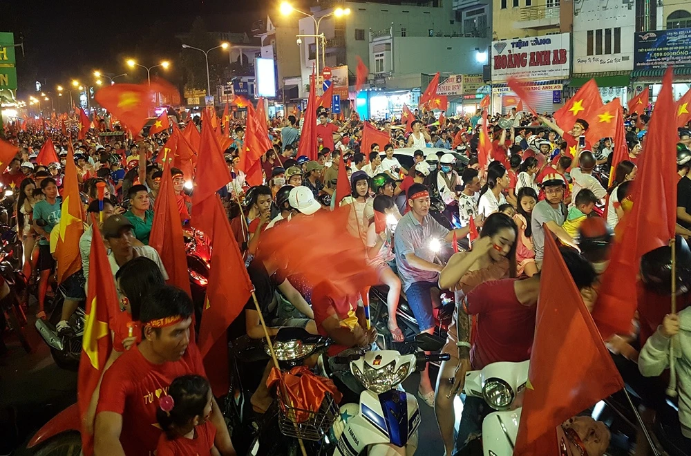 Đêm 15-12, hàng chục ngàn người hâm mộ đã xuống đường ăn mừng chiến thắng của đội tuyển bóng đá Việt Nam vô địch AFF Suzuki cup 2018.