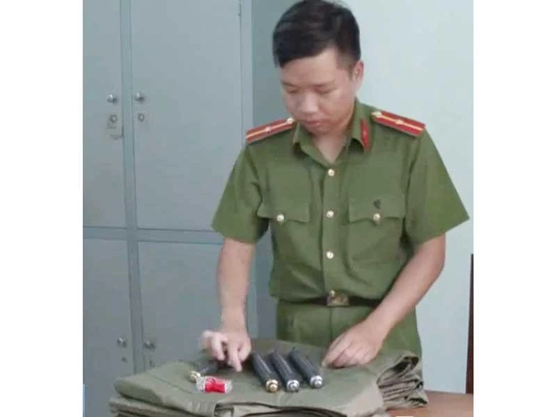 Áo giáp chống đạn, dũ ba khúc... bị công an thu giữ. Ảnh: VH