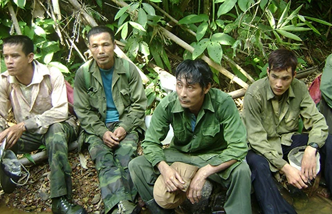 Việc mở đường “chọc” vào Vườn quốc gia Cát Tiên có thể ảnh hưởng đến phát triển bền vững của vườn. Trong ảnh: Các lâm tặc bị bắt trong một vụ phá rừng Cát Tiên. Ảnh: MP