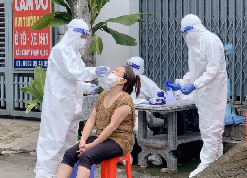Nhân viên Y tế lấy mẫu xét nghiệm cho người dân TP Biên Hòa. Ảnh: VH.