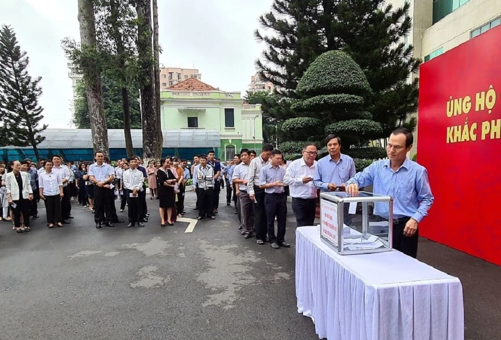 Cán bộ, nhân viên UBND tỉnh Đồng Nai ủng hộ đồng bào miền trung bị thiệt hại do lũ lụt. Ảnh:VH.