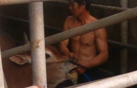 Bò bị bơm nước tại lò mổ Danh, xã Hố Nai 3, huyện Trảng Bom (ảnh ghi vào chiều 9-12). Ảnh: V.NG