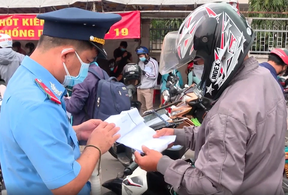 Cơ quan chức năng tỉnh Đồng Nai kiểm tra giấy xét nghiệm của những người từ TP.HCM đến. Ảnh: VH.