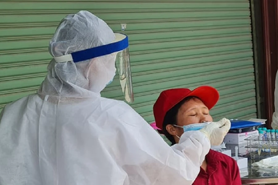 Nhân viên lấy mẫu xét nghiệm người dân. Ảnh: VH.