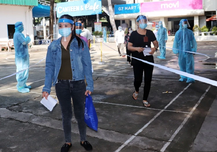Ngành Y tế tiến hành xét nghiệm sàng lọc COVID-19 cho 17.000 người lao động công ty PouChen. Ảnh: AX