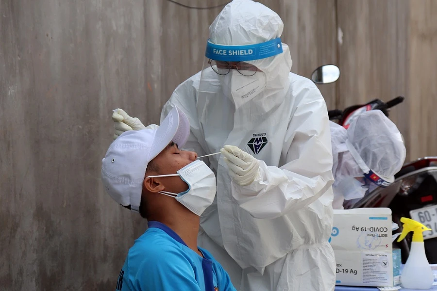 Nhân viên Y tế tỉnh Đồng Nai lấy mẫu xét nghiệm cho người dân. Ảnh: CDC.