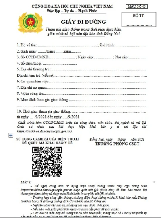 Nhằm tạo điều kiện thuận lợi cho các cơ quan, doanh nghiệp, Công an tỉnh Đồng Nai đăng tải mẫu Giấy đi đường số 03, số 04 kèm theo các nội dung hướng dẫn này trên Cổng thông tin điện tử Công an tỉnh Đồng Nai ( http://congan,dongnai.gov.vn ) để nghiên cứu, thống nhất thực hiện .