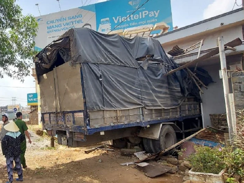 Xe tải đã tông sập cửa sắt bên ngoài, lao vào nhà tông sập vách phòng ngủ và dừng lại. Rất may thời điểm xảy ra sự việc, cả gia đình nạn nhân đang đi vắng.