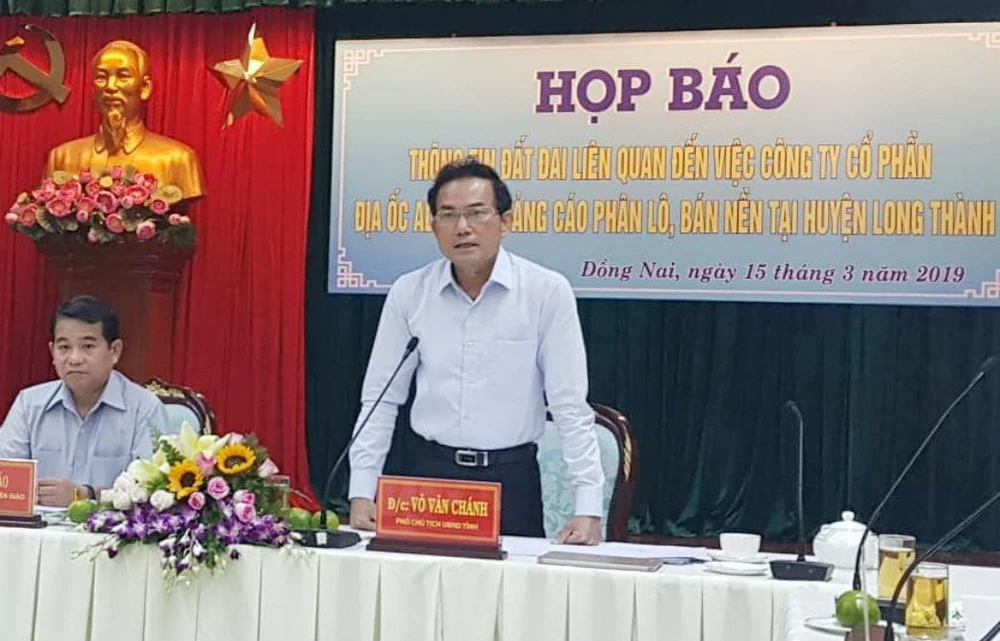 Chiều 15-3, UBND tỉnh Đồng Nai đã tổ chức họp báo thông tin đất đai liên quan đến việc Công ty cổ phần địa ốc Alibaba quảng cáo, bán đất dự án tại huyện Long Thành.