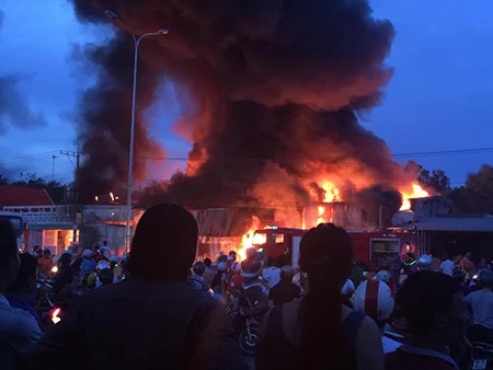 Lực lượng chức năng vẫn đang ra sức khống chế để ngọn lửa không lan rộng ra các khu vực lân cận.