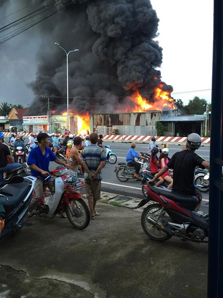 Xưởng vải vụn trên tuyến quốc lộ 51B, Long Thành, Đồng Nai TP.HCM bất ngờ bốc cháy dữ dội, khói đen cuồn cuộn. Ảnh : Giang Anh