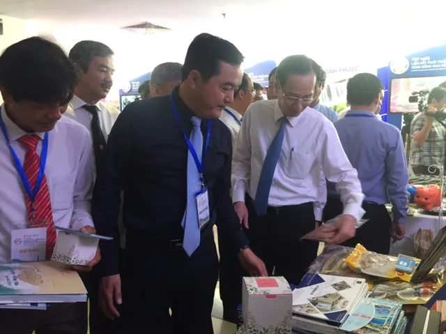 Phó chủ tịch UBND TP.HCM Lê Thanh Liêm tham quan gian hàng giới thiệu điểm đến nổi bậc, đặc sản địa phương của các tỉnh tại khu vực triễn lãm của hội nghị