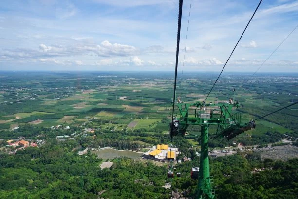 Từ trong cáp treo lên đỉnh núi Bà Đen, du khách chiêm ngưỡng bức tranh thiên nhiên tuyệt đẹp