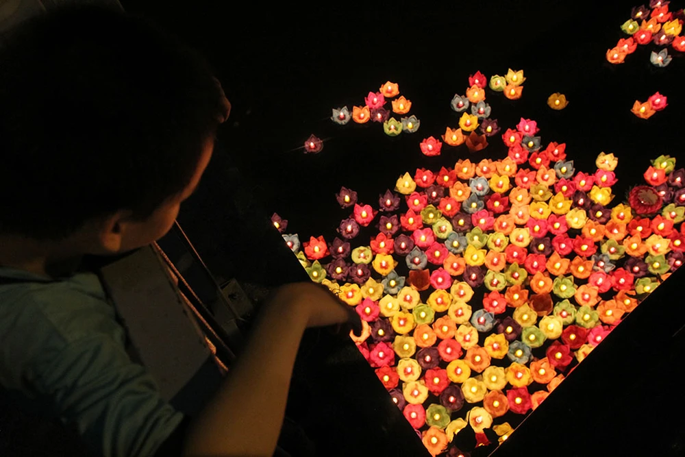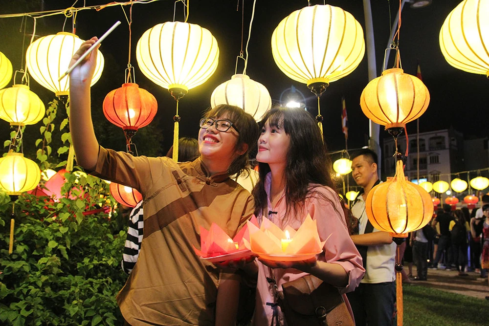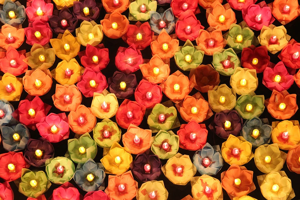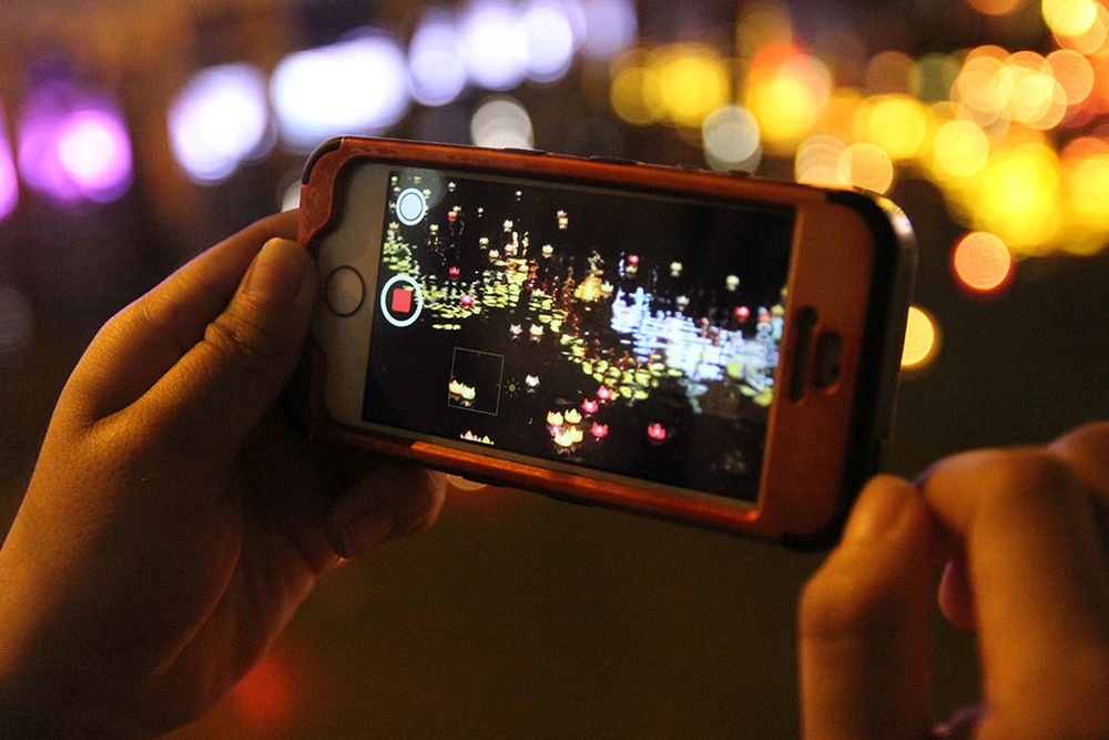 Ghi lại hình ảnh hoa đăng trong đêm lễ.