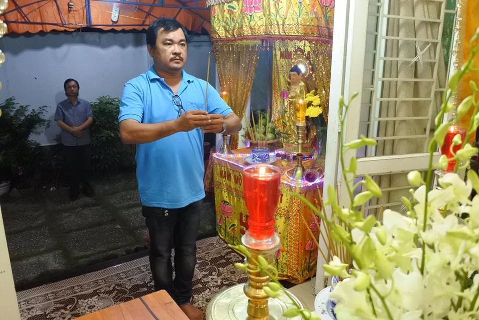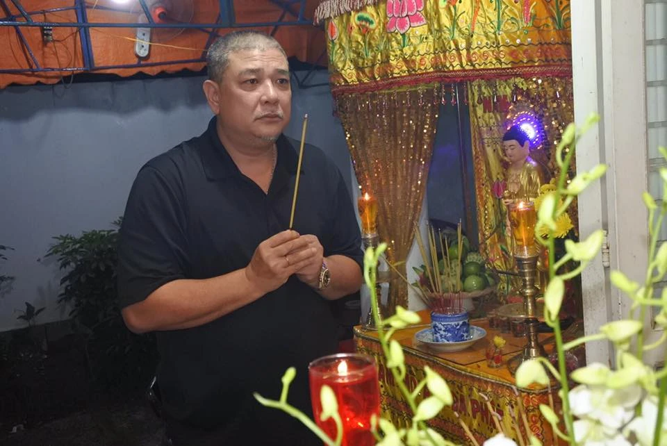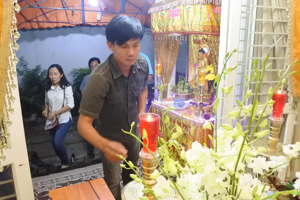 Nghệ sĩ Kim Cương rưng rưng chia buồn với gia đình.