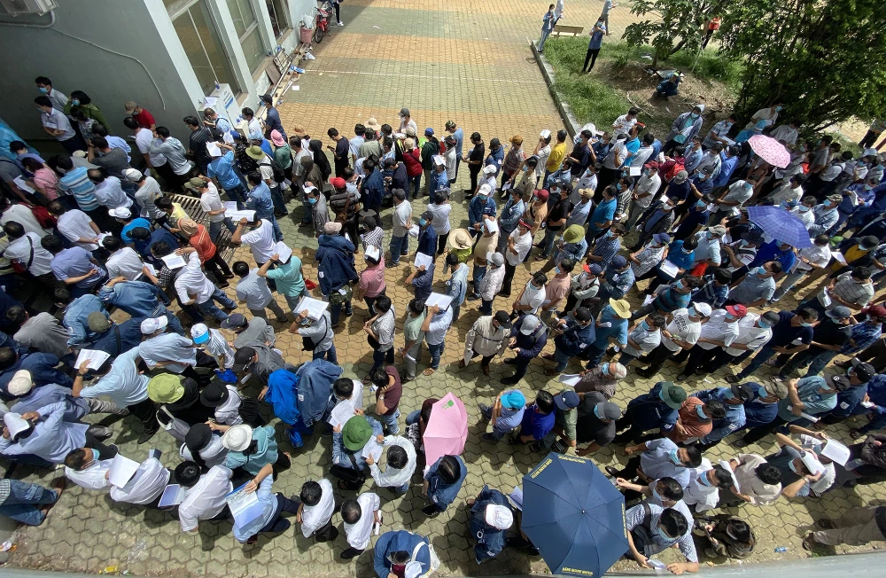 Khu vực khám sàng lọc luôn kín người, nhân viên y tế phải làm việc không ngơi tay.