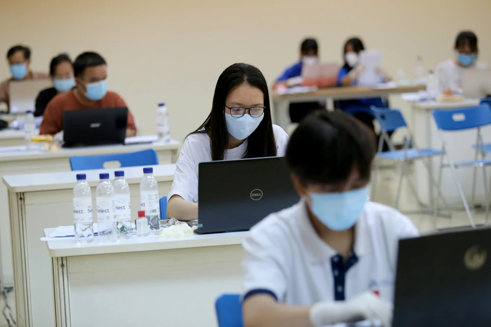 Khoảng chục nhân viên bận rộn với công tác nhập liệu thông tin tiêm chủng của người dân để cập nhật lên hệ thống.